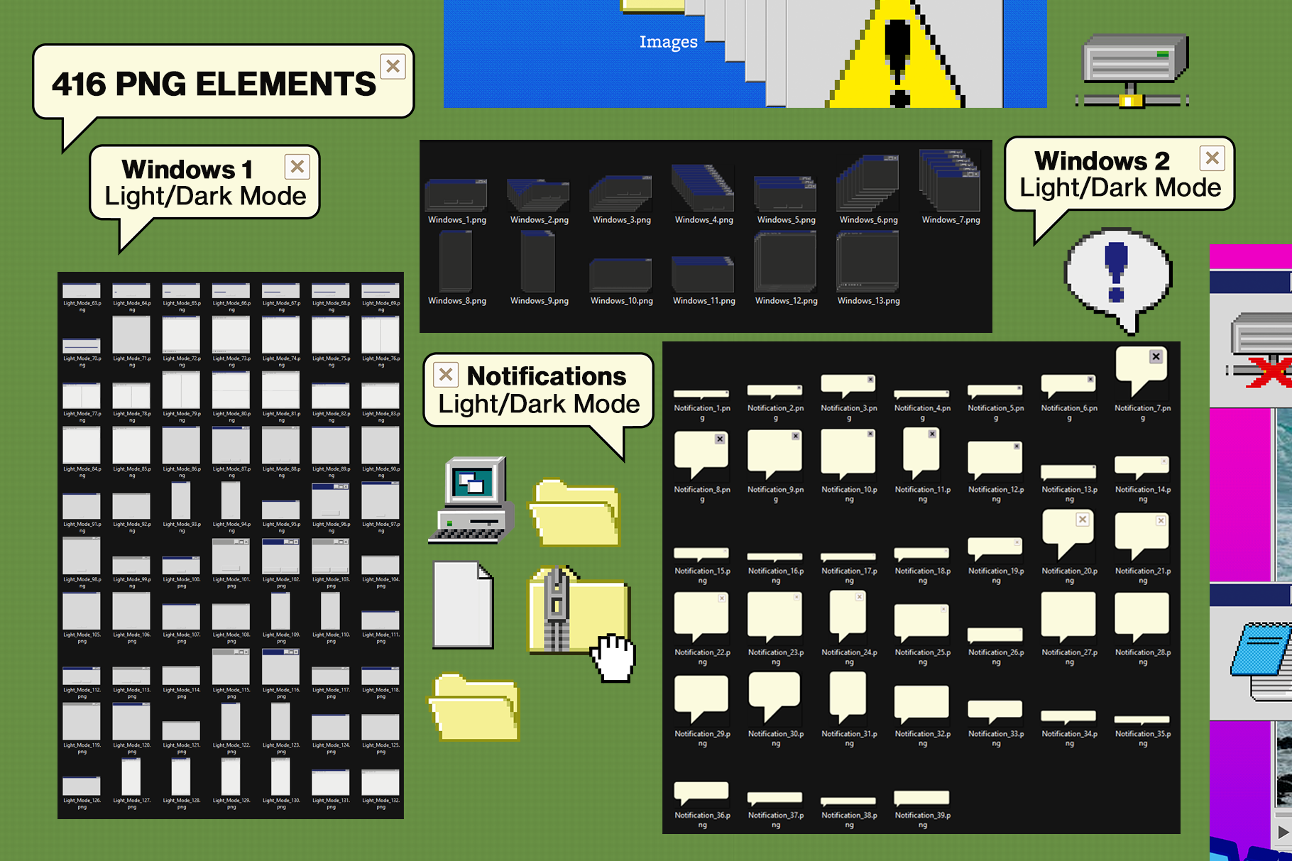 416 PNG Elements in every color (even in a Light/Dark Mode) ready to be drag & dropped into your projects: